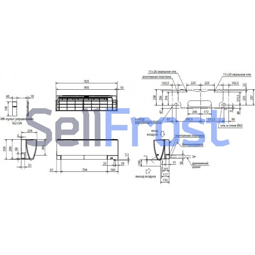 Габаритные размеры, мм 925х234х305